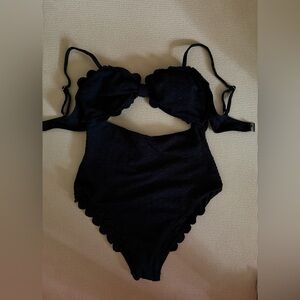 NEW Cupshe black Scalloped Cutout One Piece Swimsuit Size large