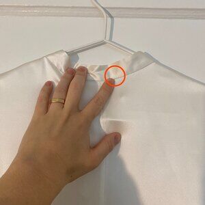 100% real silk: charmeuse body with organza combo on the sleeves. The fabric is extremely beautiful, it looks amazing in person. The sheer organza sleeves are so unique (and look super awesome if you have tattoos you want to show off!)