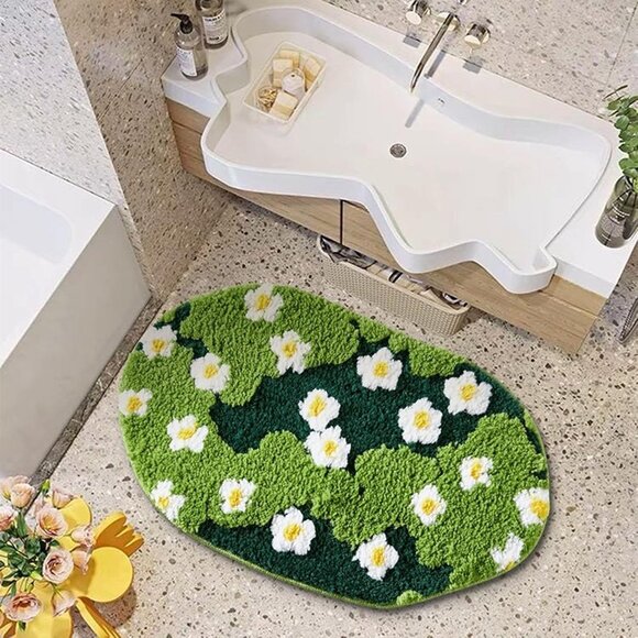 NEW Cute Green Floral Bath Mat Microfiber Moss Bathroom Rug 16''Wx24''L Non Slip
