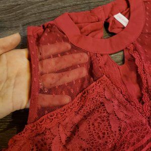 NEW! Cutout Sheer-Neck Shift Crimson Red Dress