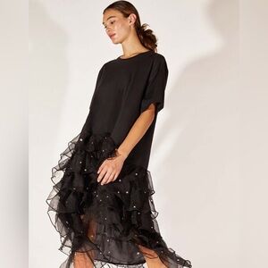 NEW Cynthia Rowley Fete Ruffle Tee Dress Size Small Black Rhinestone Party NWOT