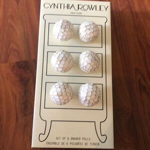 NEW Cynthia Rowley set of six drawer pulls Rustic shabby chic gold white round h