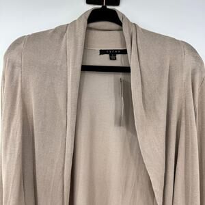 NEW Cyrus Open Front Cardigan Sweater L Tan Linen Viscose Coastal Neutral Cozy