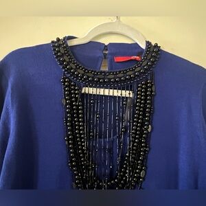 NEW! Cyrus Rich Blue Viscose Top With Jeweled Neckline Women’s Size Large