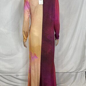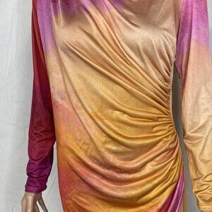 NEW DASKA Ruched Blur Print Maxi Dress • Size L • Multicolor