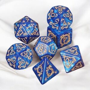 NEW D&D Polyhedral DND Dice Set Iridescent Blue Swirl Water Acrylic D20 RPG MTG