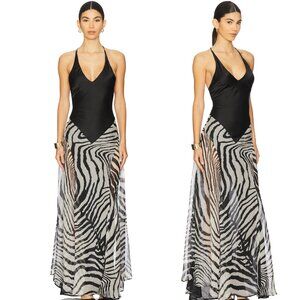 NEW DELFI Antonella Maxi Dress in Zebra Print Silk Black & White Resort Small S
