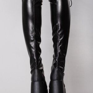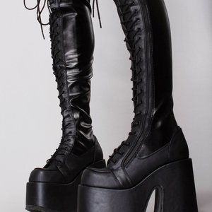 NEW DEMONIA - CAMEL 300 Black Platform Thigh-High Boots