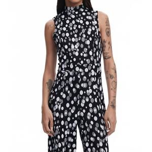 NEW DESIGUAL dotty mock neck jumpsuit in black