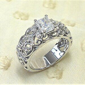 💥NEW DIAMOND DAINTY RADIANT CUT CARVED 925 STERLING SILVER ETERNITY RING, K997