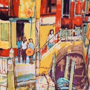 Cute mulitcolor long sleeve shacket, jacket with an artsy scape print. Great condition