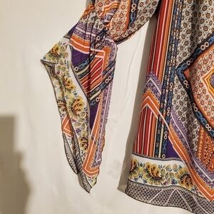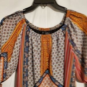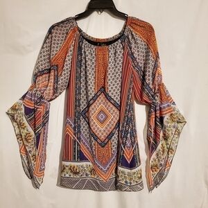 Delight in the vibrant allure of our New Directions Blouse. The beautiful multicolored design sets a lively backdrop for any occasion. Crafted from 100% Polyester, this blouse is an expression of effortless style and uncompromised comfort. Embrace the charm of bell sleeves, which add a trendy, yet classic touch. This blouse sets the stage for an ensemble that is both chic and elegant.