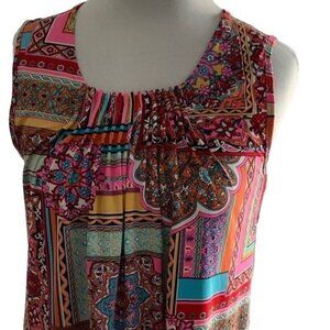 NEW DIRECTIONS TANK, PLEATED FRONT, PULL OVER S MULTI COLOR POLYESTER, SPANDEX