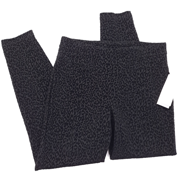 NEW DIRECTIONS Women's Black Ponte Pants Velvet Leopard High Rise Pull On Large