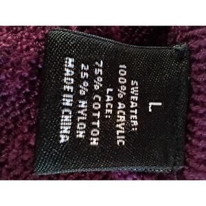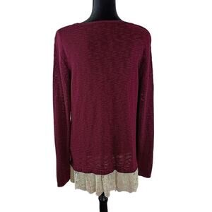 NEW DIRECTIONS Women's Tunic Sweater Large Maroon Acrylic Winter Ruffled Lace
