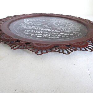 New, never displayed, Cradle to Grave Curiosities, gothic, Disney Haunted Mansion themed decorative piece. It is a metal tray with the famous quote Madame Leota says in the ride. It comes with a vintage brass bell to ring along while reciting the summoning spell.