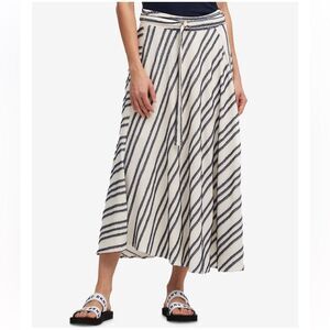 NEW! DKNY Asymmetrical Eyelash Fringe Stripe Belted Maxi Skirt - 4 ~ $109
