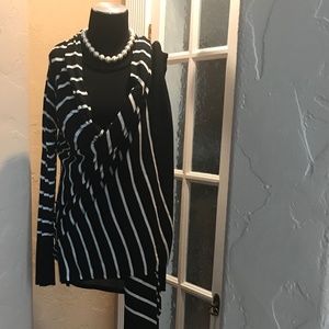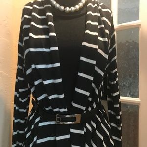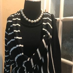 DKNY Beautiful Timeless Cardigan Black with White/OffWhite stripes.