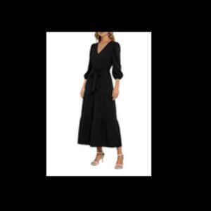 !NEW! DKNY Elegant Black Midi Dress Size 4 with Puffed Sleeves