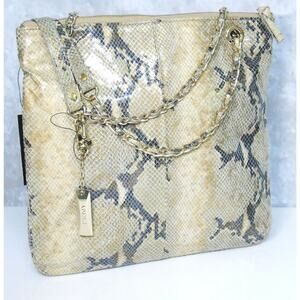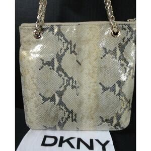 NEW DKNY Gold Python Snakeskin LEATHER HANDBAG Shoulder Crossbody Chain Purse