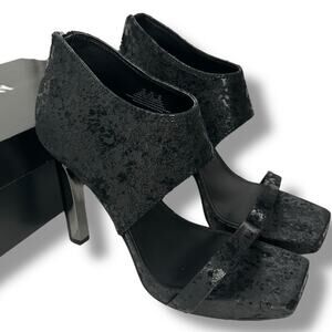 NEW DKNY Stiletto Heels Size 9.5 Leather Black Square Toe High Heel NWT