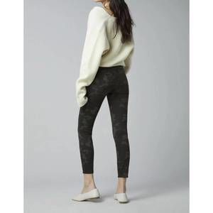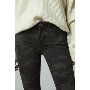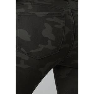 Mid-rise, cropped stretch skinny jean. Deep green camouflage print with a clean hem and antique silver hardware. Constructed with high-retention elastane technology. Instasculpt jean includes a contoured waistband and precise pattern for fit. Instasculpt smooths, lifts, and conforms to your body through the waist, seat, and thigh without losing shape. Rise: 9”, Inseam: 26”, Leg Opening: 9.25”. 58% cotton, 28% Tencel™, 13% polyester, 1% Lycra®..