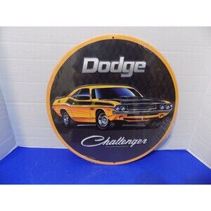 NEW DODGE Challenger Metal Sign Mancave Garage NEW tin 12" round embossed sealed