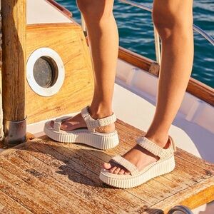 The elevated, on-the-go sandal. DEBRA pairs a cool, modern platform sole with velcro straps, creating the perfect go-anywhere, do-anything look. Comfy and current, we can't wait to hit the streets in these.