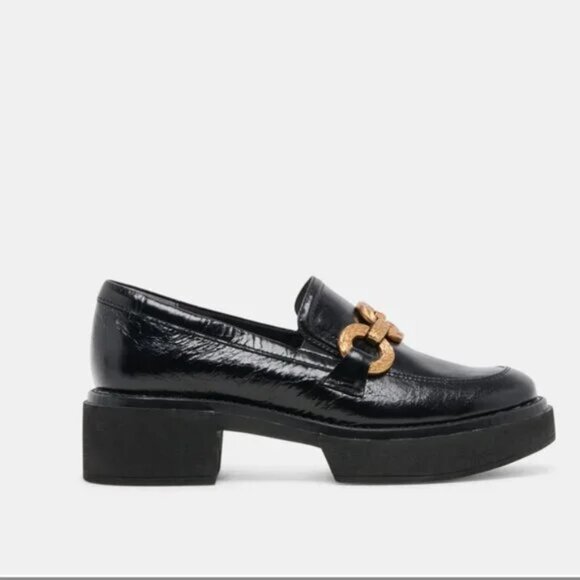 NEW DOLCE VITA Leather Sheena Midnight Patent Loafers in black for women 1125 3t