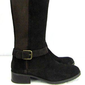 NEW DONALD J PLINER Brown Suede Stretch Buckle Small Heel Knee High Boots 9.5 M