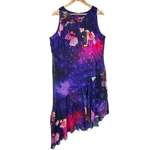 NEW DONNA KARAN 14 Sleeveless Asymmetrical Purple Floral Midi Women's Dress