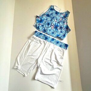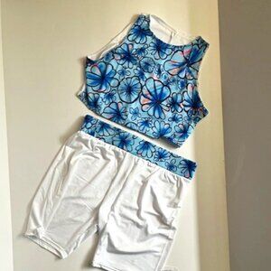 *NEW DORIS High neck 2 pc Swim Short Set - Size L Lt Bl - Dk Bl - Pink - White flower print. True to size.