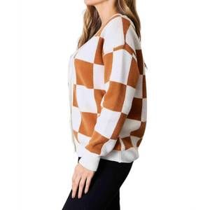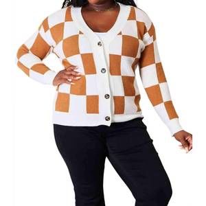 This Plush Oversized V-Neck Cardigan features long sleeves, a button closure, and a relaxed fit. Made from 85% acrylic and 15% polyester, it offers comfort and style with an elegant plaid pattern.