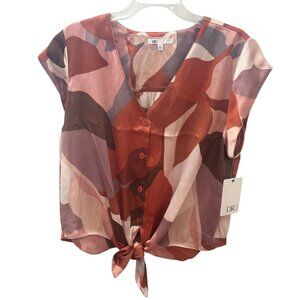 NEW DR2 Women’s Cap Sleeve Tie Blouse Abstract Pattern Size XL NWT