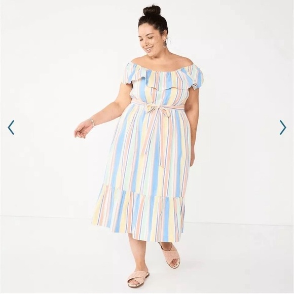 NEW DRAPER JAMES RSVP Off Shoulder Ruffle Sleeve Striped Midi Dress Size 3X