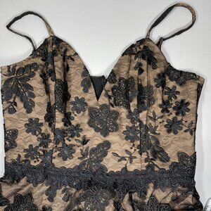Dress The Population Women’s Cocktail Dress Black/Nude Size M Tahani Floral Midi