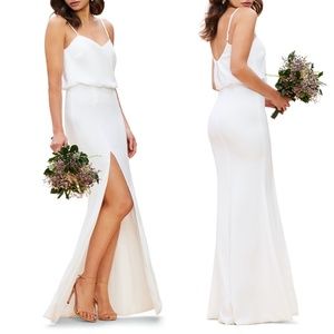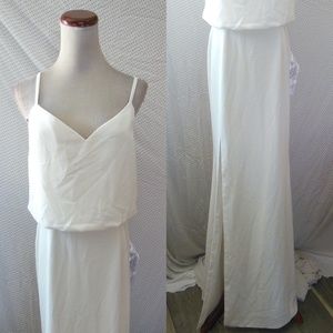 NEW DRESS THE POPULATION Off White GRACELYN Blouson JERSEY Slit Bridal GOWN