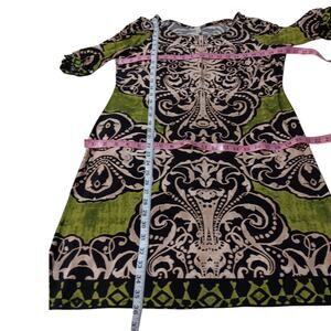NEW DRESSBARN Dress 14 Stretchy Shirred 3/4 Sleeves Colorful Career Office Event