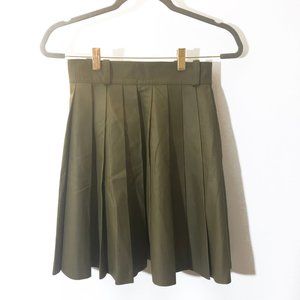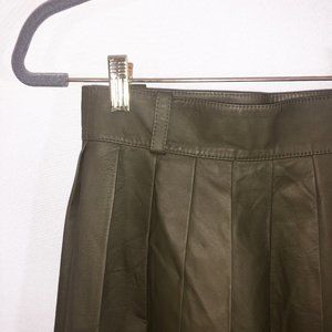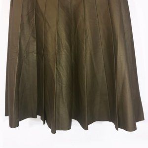 Olive Green Lambskin Leather Pleated A-Line Mini Skirt. Never Worn. Made in Italy. Side Closure with 2 buttons and a zipper. Fits is a Euro Size S (a bit closer to a US Size XS). Super Chic & On Trend!