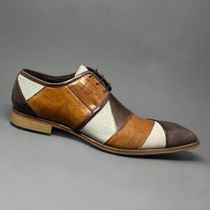 DUCA by Matiste "Imperio" / Brown Tri Tone / Genuine Italian Calf Leather / Crocodile/Ostrich/Lizard Embossed Print / Lace-Up Dress Shoes