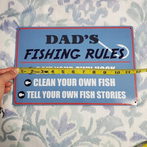 🔥 NEW Dad's Fishing Rules Metal Tin Sign Wall Mounted