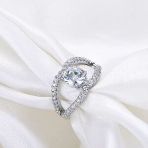 This ring features a sterling silver band with a unique crescent moon shape. Adorned with sparkling CZ’s and a 1 carat center stone.