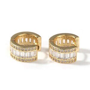 NEW Dainty Huggie Hoop Earrings 14K Gold Plated Cubic Zirconia Classic
