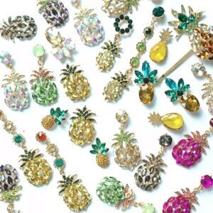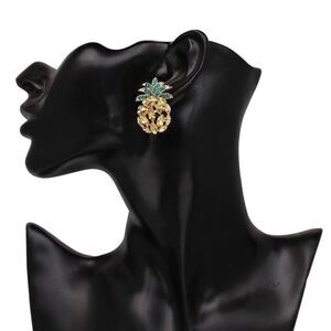 These pineapple studs are dazzled with big, bright yellow and green crystals. Golden posts and details.