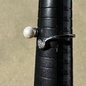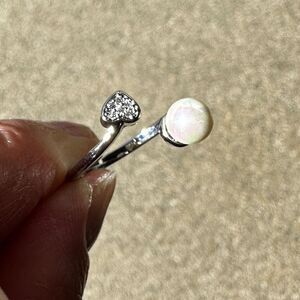 NEW Dainty White Gold Plated Pave Heart and Pearl Ring - Adjustable / One Size