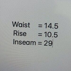 Waist = 14.5 Inches, Rise = 10.5 Inches, Inseam = 29 Inches