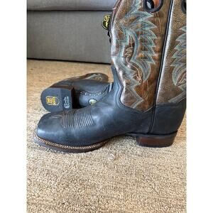 NEW Dan Posts Duece Cowboy Boots Size 10 Blqck/Brown/Blue/White Leather Sq Toe