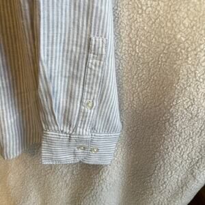 NEW Daniel Hechter Paris linen blend blue white striped button down shirt size L