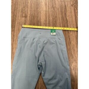 The NEW Danskin Women's XL High Rise Brushed Leggings are made from recycled polyester and spandex, making them a sustainable and comfortable choice for activewear. These leggings are designed for women in size XL with a high rise waist and ankle length, perfect for various athletic activities. The blue color adds a pop of style, while the polyester and spandex material provides flexibility and support for the legs. Perfect for workouts or casual wear, these leggings are a versatile addition to any woman's wardrobe.