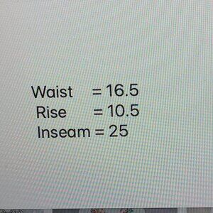 • Measurements: Waist = 16.5", Rise = 10.5", Inseam = 25"